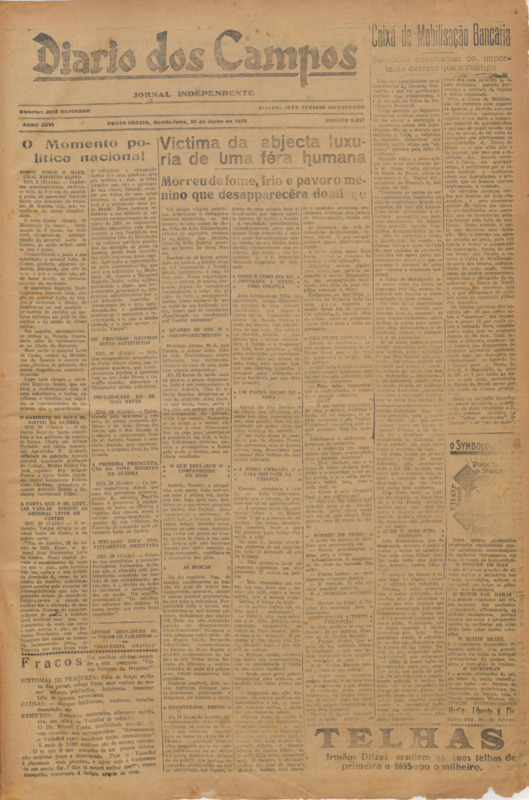 RIO, 2 (9União) — Gontor- Pfe revelou v.s< exa. ^ a ta Morreu de Io:;