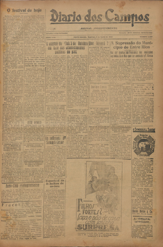 um movimento de noticiamos que em cumpri, xal, Entre-Rios só terá vantazada Caritativa" que, para to- liciliarà de uma mova j Out'4ro7dmante aluai" fo- ferentes à política de S. Pautropas pela ferrovia S. P. mento a dispositivo do Codi- gens, como aconteceu com a